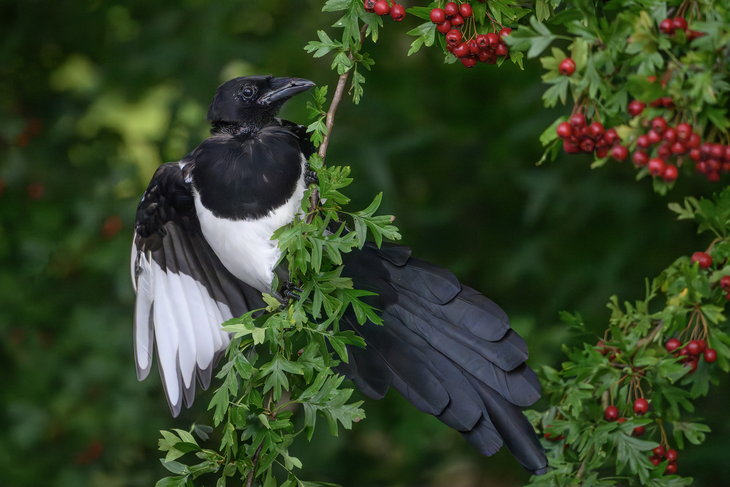 Titel: Ung husskade spiser tjørnebær