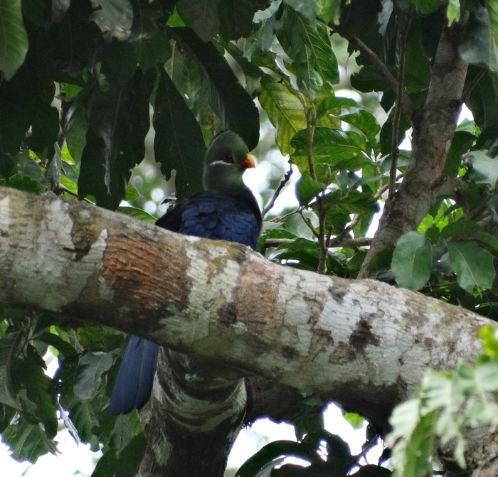 Beskrivelse: Almindelig i regnskoven i Ghana, i det mindste at dømme ud fra antallet af kaldende fugle, men noget sværere at få set en grøn fugl oppe i trækronerne, på trods af størrelsen.