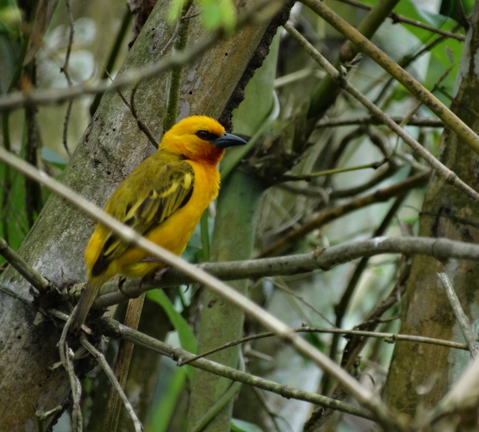 Beskrivelse: Hans Cottage Botel lidt syd for Kakum NP er et klassisk sted at se Orange Weaver i Ghana.