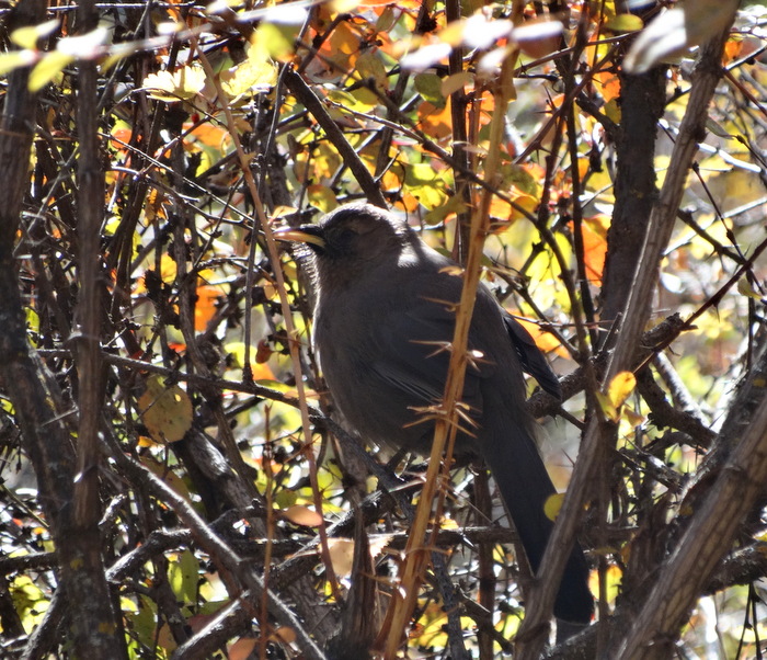 Beskrivelse: Ikke en af de mest sexede Laughingthrush'er, hvor kun det krumme, gule næb giver lidt kulør, så navnet er som sådan meget passende.