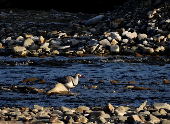 Beskrivelse: Havde valgt at afprøve Tagong udfra en omtale af udbredte steppeområder omkring byen i Lonely Planet guidebogen, men da jeg gik ud af byen ved solopgang og så floden, som løber gennem dalen, tænkte jeg, at det da lignede et fint sted til Ibisbill.