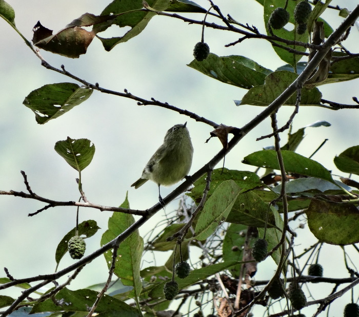 Beskrivelse: En underlig skabning, som mere ligner en fuglekonge/løvsanger end en mejse, og man skal være ret heldig for at kunne se skyggen af en gul øjenbrynsstribe!