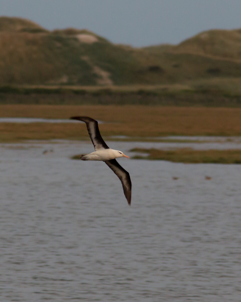 Beskrivelse: Et sandt drama udspillede sig denne morgen, da to gamle havørne indledte en intens og vedvarende jagt over godt 5 min på stakkels Albert. Flere gange var der umiddelbart kontakt mellem fuglene og det var givetvis rent held, at den lidt over 7 efter at have sundet sig blandt knopsvanerne igen kunne flyve over klitterne og ud over Nordsøen.