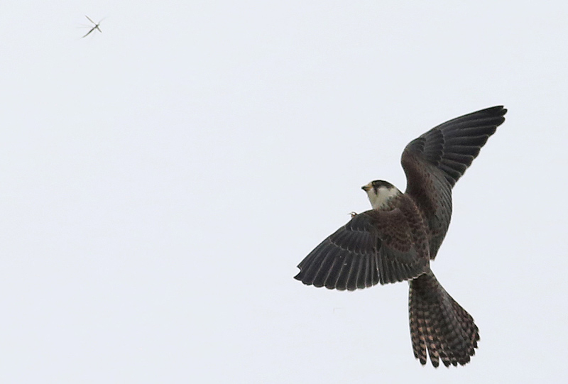 Under insektjagten sås mange gange, hvordan falken behændigt snappede stankelben og mindre i sekter. Jagten her var langt hurtigere og mere elegant end man ser det hos den mere målrettede, men også noget mekaniske Lærkefalk. Med hurtige udfald og uventede manøvrer kunne jagten minde en del om den, man ser hos Eleonorafalk på småfuglefangst.
