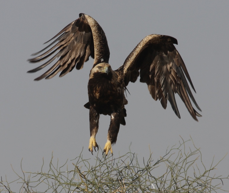 Beskrivelse: En adult Kejserørn sås lette i flot medlys i Indisk Trappe-reservatet Desert National Park, Jaisalmer, Rajasthan i det nordvestlige Indien