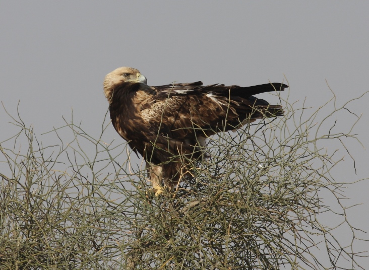 Beskrivelse: En adult kejserørn sad i flot medlys i Indisk Trappe-reservatet Desert National Park i Rajasthan