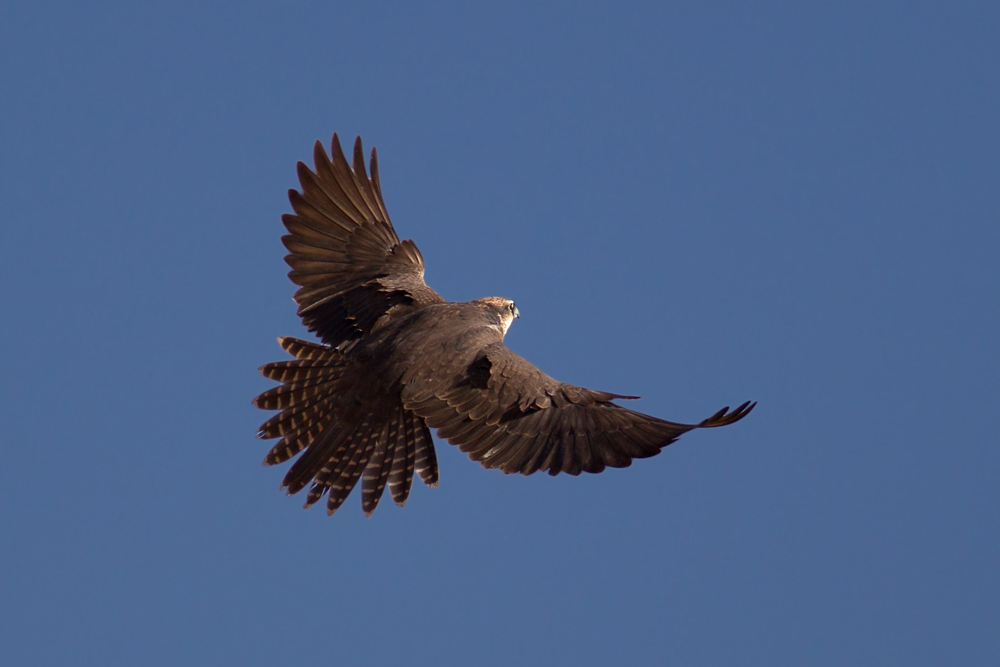 Beskrivelse: Dette foto oploades for at illustrere immature lannerfalks m svage bånding, eller i dette tilfælde nærmest ubåndede centrale halefjer (virkede på denne fugl helt ubåndede i felten).