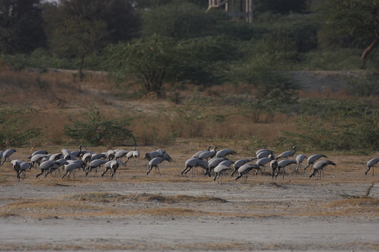 Beskrivelse: Vi så ca. 350-400 rastende jomfrutraner i det lille blackbuck-reservat Tal Chhapar i Rajasthan.