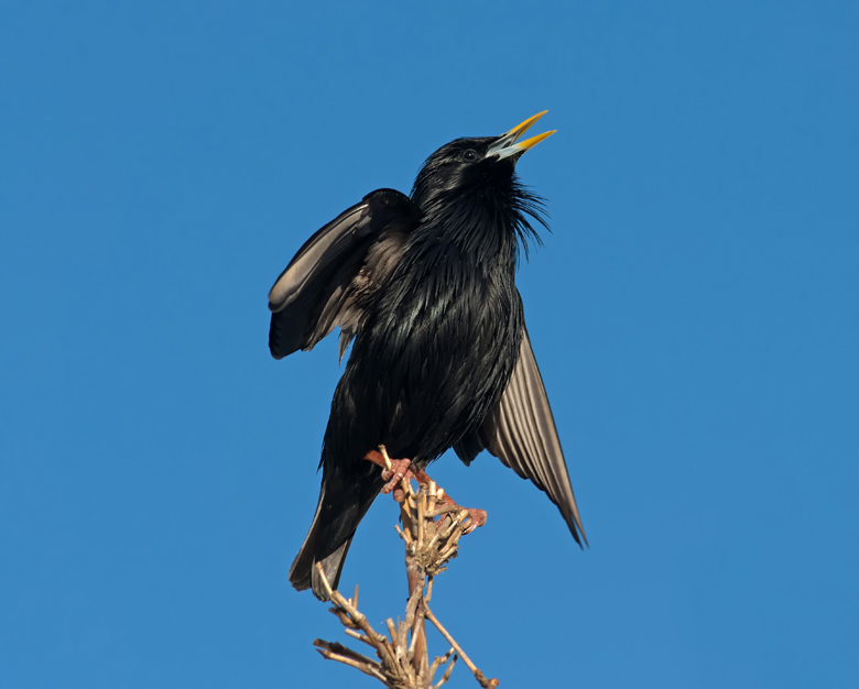 Den var på sangposten lidt gnistrede, klaprende og vingeflagrende som vores Stær, men ikke så udpræget,flagrede kun ganske lidt med vingerne.
