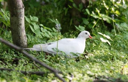 Jeg har aldrig set en albinoringdue før. Den er næsten ren hvid, dog med lysegrå midterhalefjer.