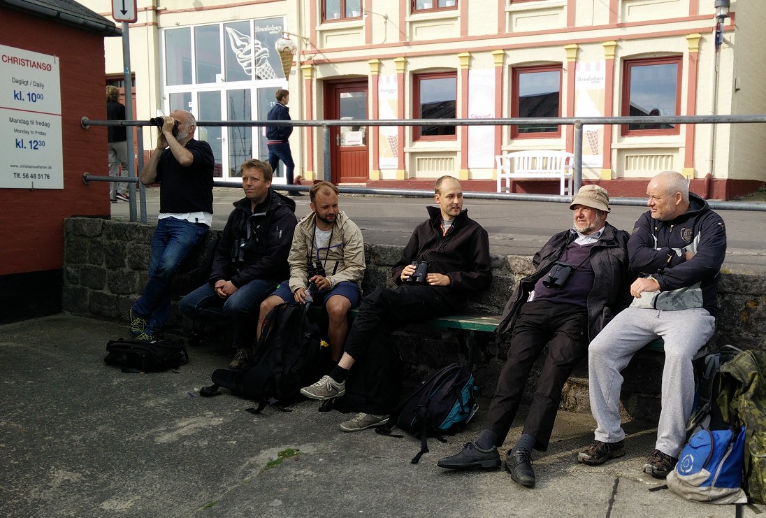 Beskrivelse: Danmarks nummer 1 og 2 med følge venter på afgang til Chrø og Sulphur-bellied Warbler. En fugl fundet af Sebastian Klein (The Magnificent eller bare The King) dagen før.