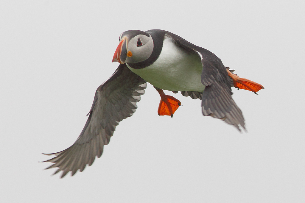 Beskrivelse: Det var desværre ret tåget, den dag vi besøgte Mykines. Det var derfor lidt af en udfordring af "fange" lunderne, når de som kanonkugler dukkede frem af tågen for enten at lande eller tage en ny runde.