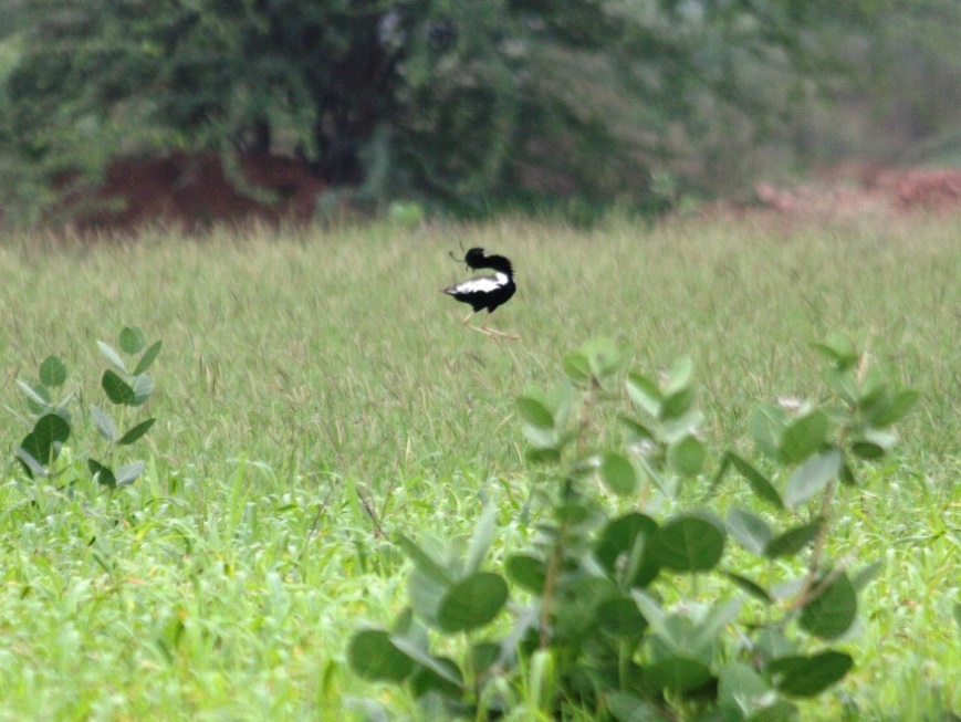 Beskrivelse: Lesser Florican, også kaldet Likh, ses kun i monsuntiden i Indien, hvor hannerne laver parringsspil i de fugtige, grønne marker og enge. De kalder med et tørt, rullende kald, som kan høres over lange afstande. Hannen hopper op i luften med de lange gule ben trukket ind under sig, breder vingerne ud når den er højest, og daler ned igen. Et mærkeligt syn. Hunnerne er uanseligt gråbrune, men er meget større end hannerne. Lesser Florican er nu globalt truet art, og er en meget sjælden ynglefugl i Indien. Dens kerneområde er omkring Ajmer i Rajasthan, hvor vi i løbet af to dage så eller hørte 4-5 hanner og 3 hunner.