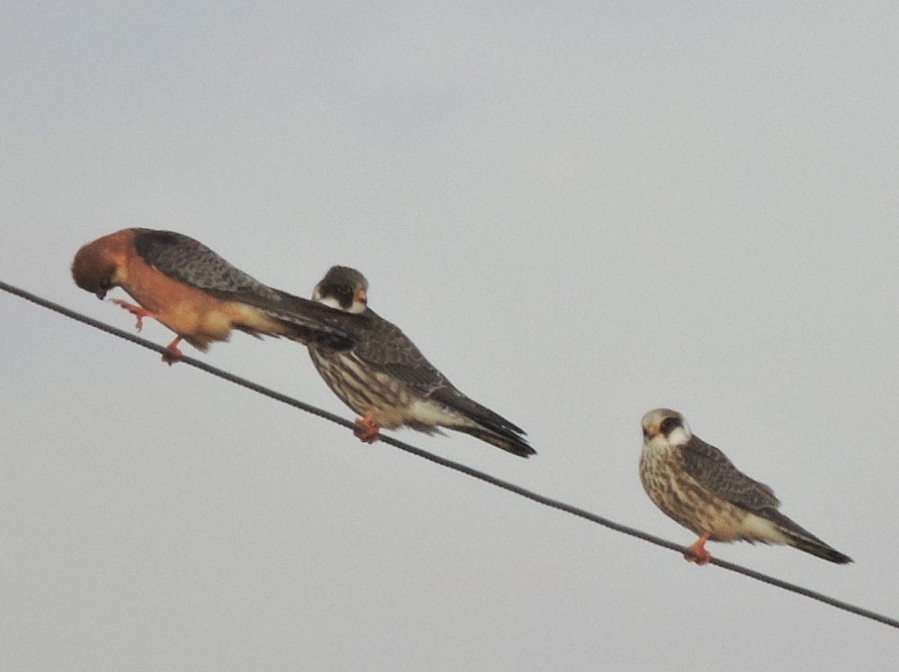 Beskrivelse: Putative Amur Falcon or aberrant Red-footed Falcon??? I left the bird unidentified certainly at the moment because two characters I don't know if can fit for Amur Falcon. The general appearance theoretically looks OK for the species, but the flank feathers seem to look oak leaf patterned mixed with arrowhead patterns (rear flank). The mask is strong and almost rounded edged, which is strange, but itself is not against or in favor of Red-footed or Amur. Brief description: In the field it seemed to be slightly compacted in construction than the Red-footed Falcons. It has grey tail with dark transverse bands. Upperpart (cap, nape and back) grey. The remiges were black/blackish with white spots. Rear wing (trailing edge's band) black and relatively wide, obvious. The underwing pattern reminded chessboard drawing, undoubtedly black and white, which was very obvious and is strongly in favor of Amur. I have not noticed the presence of any brown color in underwing and whole underbody. Undertail coverts white or whitish. http://rombird.ro/en/obf/13681/index Comments are welcome!