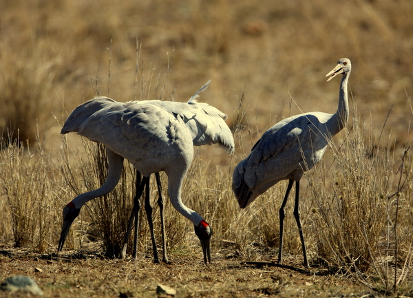 Beskrivelse: East of The Great Northern Highway between Homestead 'Alice Downs' and Aboriginal settlement Warmun. At noon on a hot day in the end of the dry season - hot means 42 degrees (a theoretical value; - since shade was nowhere to find) I presume that these birds are a pair with their grown juvenile still attached.