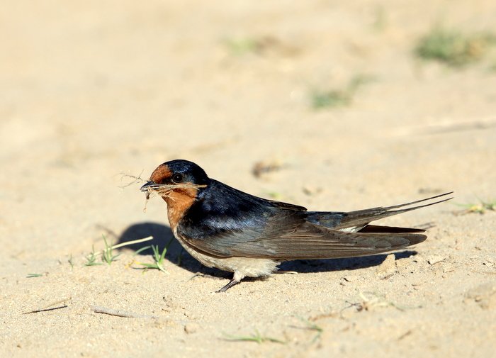 Beskrivelse: Collecting materials for the nest in the dunes.