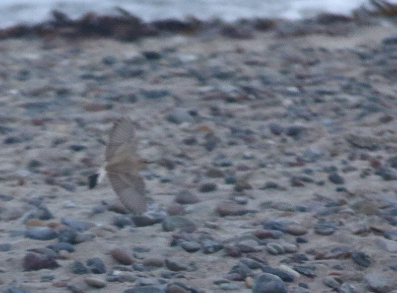Beskrivelse: I flugten er arten påfaldede lys, men meget lyse vinger (og stort set hvide undervinger). Bemærk det korte sorte "midtbånd" i halen
