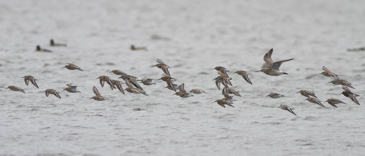 Titel: With Purple Sandpiper, Sanderling, Bar-tailed Godwit and Grey Plover