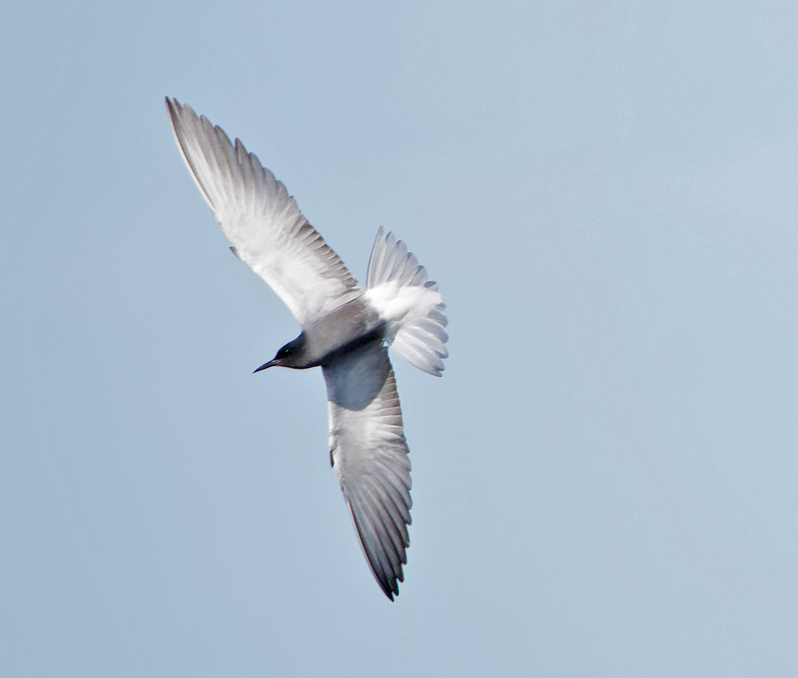 Beskrivelse: Held i uheld: Ved slutningen af en foto tur til Ølundgård inddæmning ved Otterup måtte jeg, som offer for fuglekiggerens distraktion, konstatere at jeg havde glemt at slukke tændingen i bilen, der således ikke kunne starte, hvorfor Falck blev hidkaldt. Pludselig dukkede to herlige sortterner op, kredsende rundt over vandet med lejlighedsvise dyk ned mod overfladen.