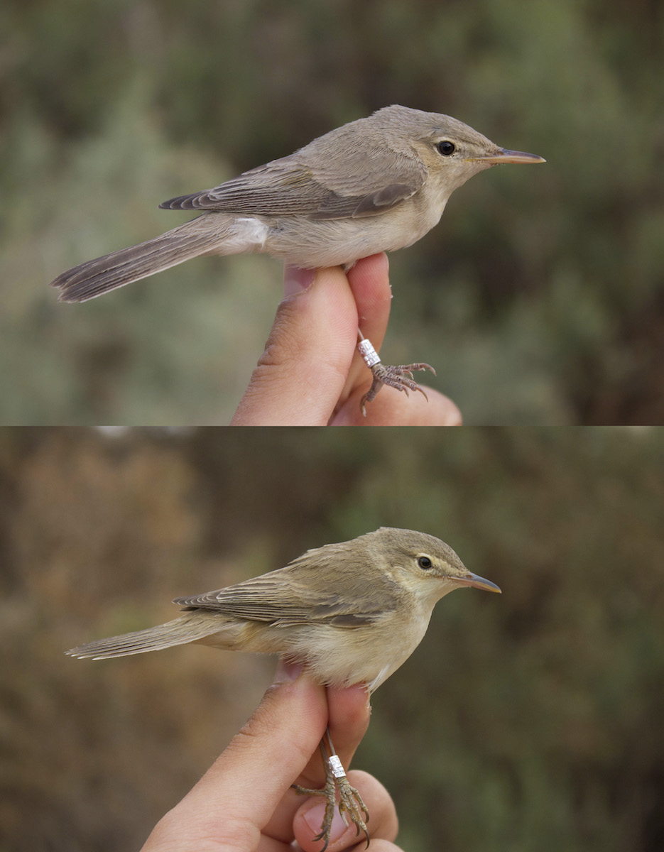 Titel: Comparison of Eastern Olivaceous Warbler (top) and Caspian Reed Warbler (bottom)