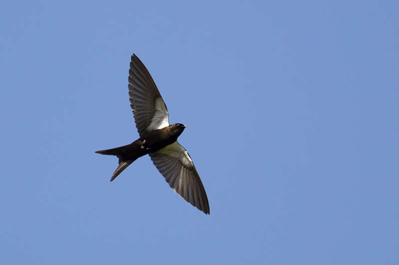 På dette foto ses et bronze-agtigt skær, hvilket overbeviser mig om at fuglen er en Brown Saw-wing (racen antinorii, der som andre racer af og til regnes som egen art). Man skal dog altid passe på med racen antinorii, idet ungfugle af alle racer har brunlig krop. Denne fugl er dog, efter min mening, adult og desuden er skæret bronze, ikke ungfuglens mat brune farve.