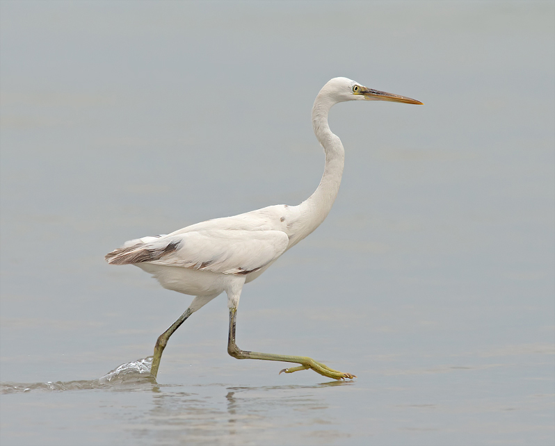 Beskrivelse: Hvid ungfugl pgra stadig mørke pletter på svingfjer.