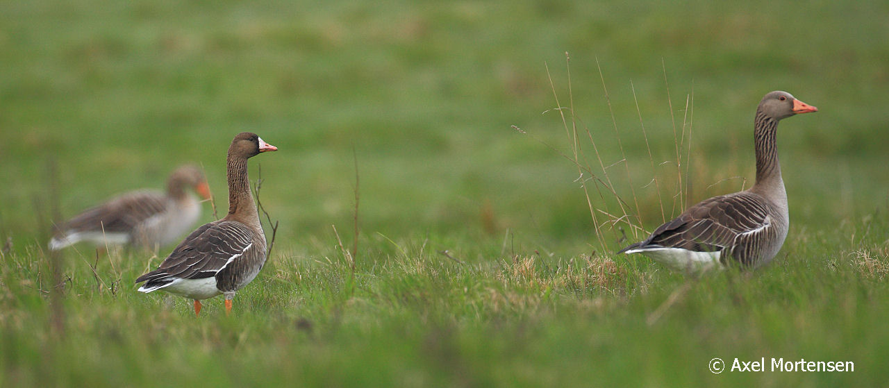 Beskrivelse: Gik sammen med grågæs. Lidt mindre end grågæssene.