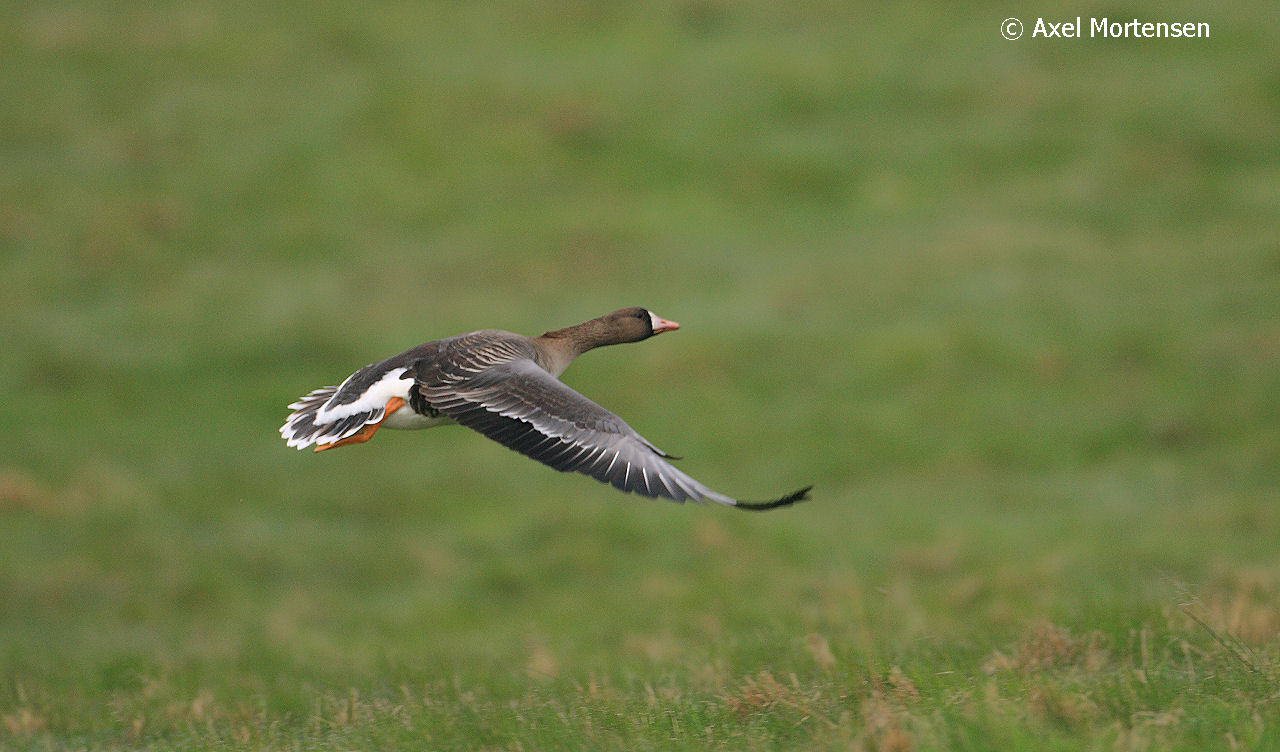Beskrivelse: Gik sammen med grågæs. Lidt mindre end grågæssene. Mørkt hoved.