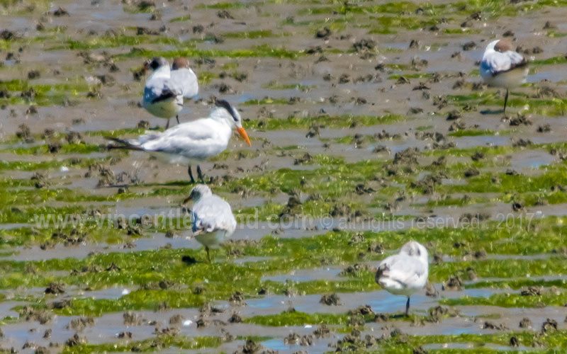 Beskrivelse: This ringed American Royal Tern pops up in Langueux estuary during high tide daily since the 9th of June 2017.
