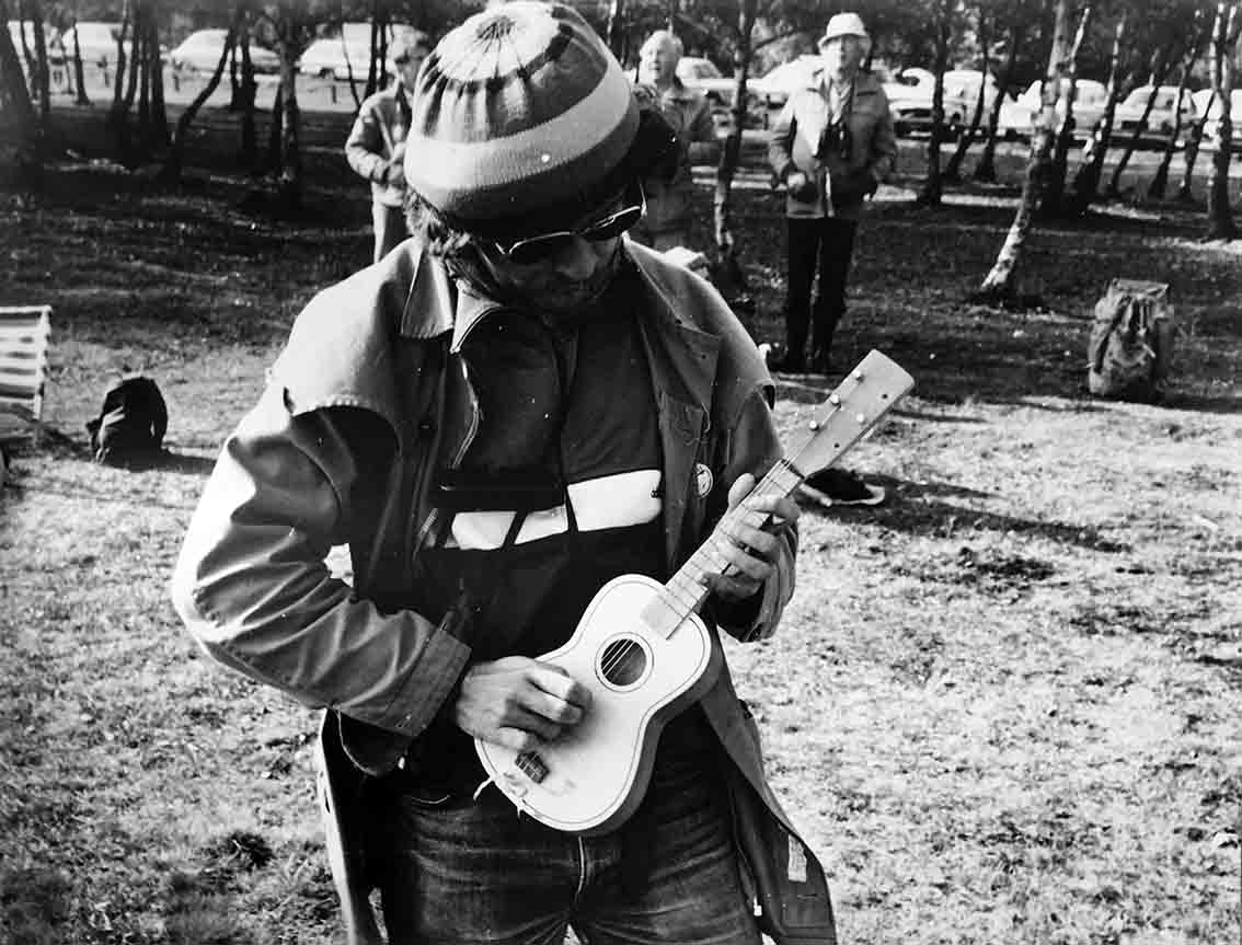 Beskrivelse: Klaus Malling Olsen underholder på Jungen på Falsterbo september 1982. Der er tale om reggae...