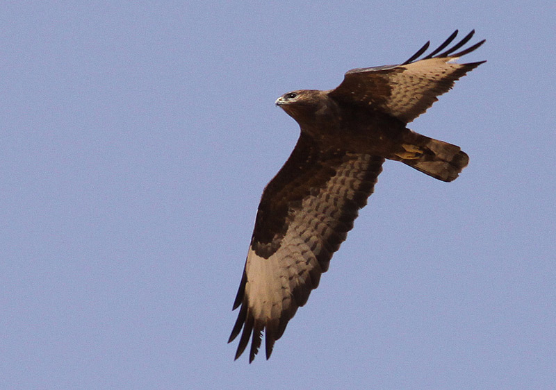 Beskrivelse: Meget mørke Steppevåger - som denne - har ret ensartet sortbrun underkrop til undergumpen, som det ses her. Er der svage lyse tegninger kan der være mere lyst bagtil, Haletegningen er tit karakteristisk: næsten hvid med bredt sort endebånd.