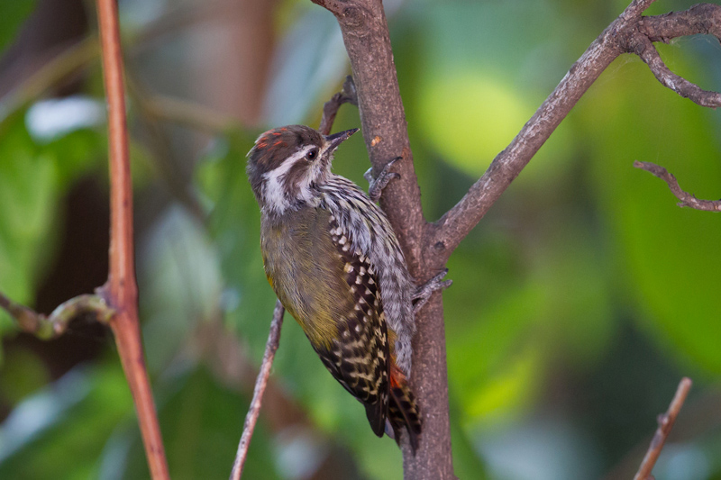 The back is still immature grey-brown, unlike the adults golden-green back (the species was formerly called Golden-backed Woodpecker!)