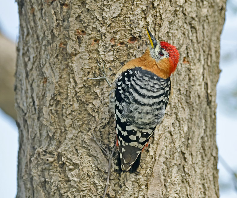Den er saftsuger og vendte regelmæssigt tilbage til samme træ, hvor den havde hakket små huller.