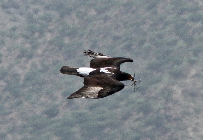 Beskrivelse: Yngleparret fløj frem og tilbage langs klipperne, og ses her med redemateriale i næbbet.