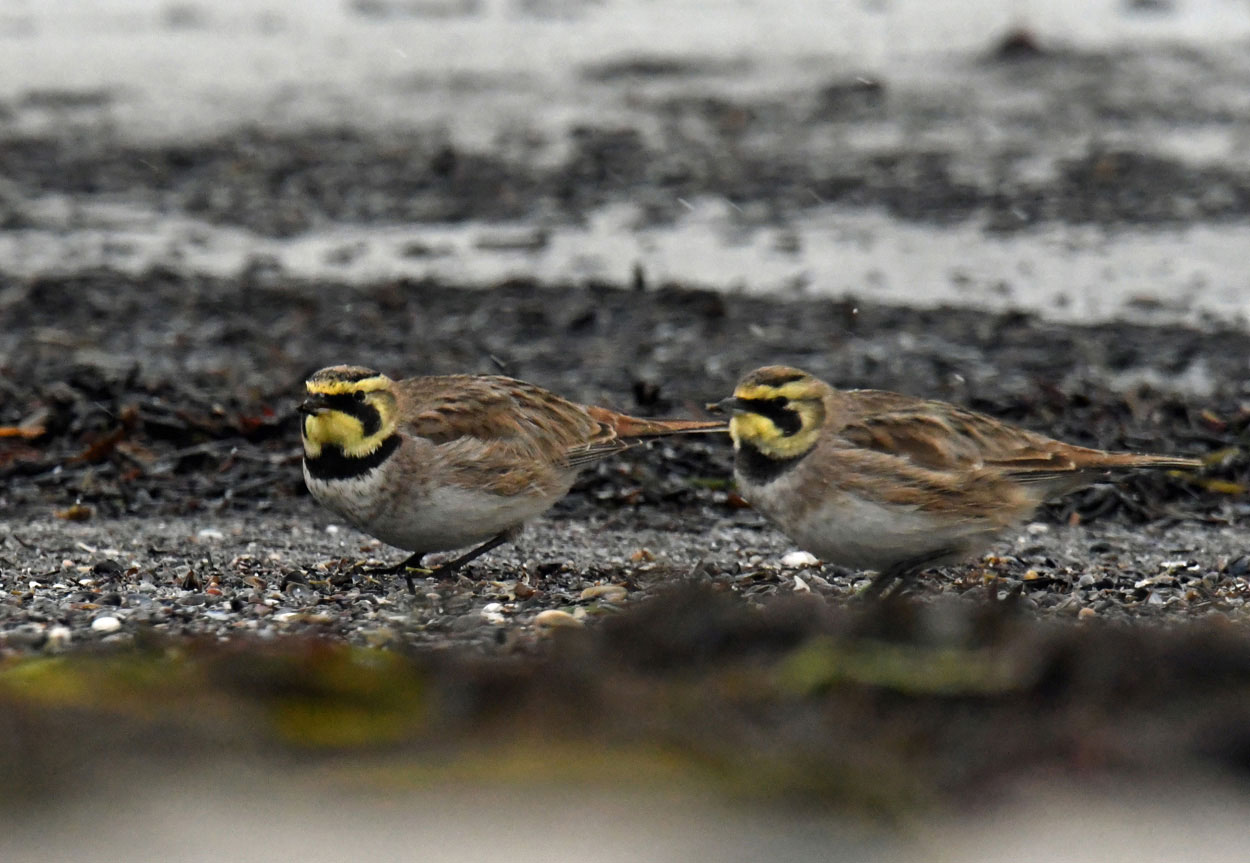 Beskrivelse: Efter et ganske kort ophold på stranden fik en medobservatør øje på de 5 bjerglærker. Til trods for en del finregn fik barnebarnet Nicolaj et par hæderlige billeder.