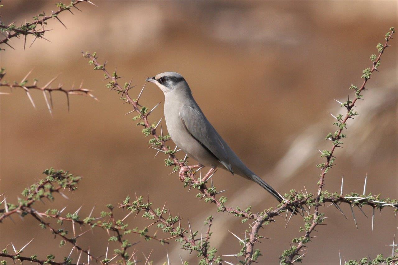 Beskrivelse: Den eftertragtede og sjældne Palmefugl (Hypocolius ampelinus) hører til sin egen familie Hypocoliidae, med kun denne art. Den kunne i november 2018 ses i den lille ørkenby Mudday i det sydlige Oman. Vi så 3-5 fugle.