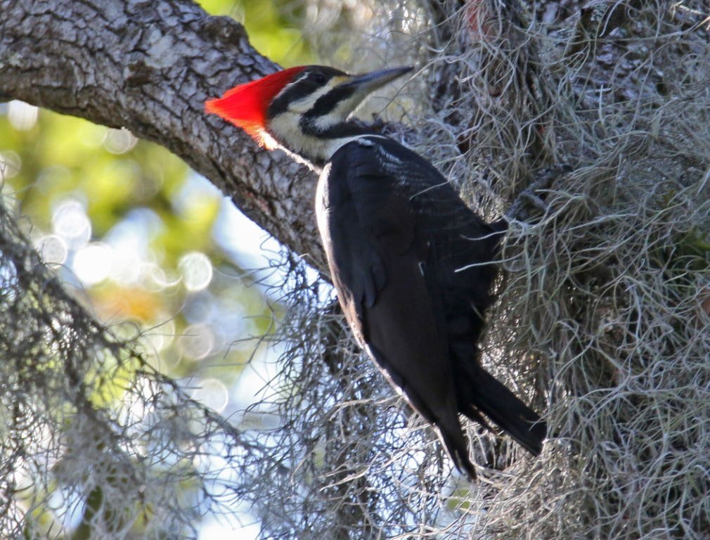 Beskrivelse: Amerikansk Sortspætte omgivet af spansk mos