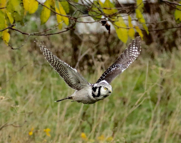 Beskrivelse: Formentlig ungfugl. Unge Høgeugler fælder tidligt, og fældningen af krop, hoved og vingedækfjer er gerne afsluttet i september (oktober). Uglen ved Hald har tilsyneladende endnu ikke skiftet de yderste armdækfjer.