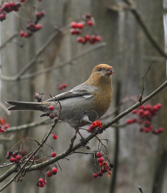 Beskrivelse: 1K Krognæb, baseret på tilspidsede halefjer, da 2k+ fugle har afrundede, og generelt friskere. Iflg. Shirihai & Svensson (2018) kan sådanne ikke sikkert kønsbestemmes, da en del hanner også har gulligt hoved/bryst. Det er iflg. denne kilde kun de hanner, der allerede får hannens røde dragt, kønsbestemmes. Derimod han adulte hunner kønsbestemmes: de er gullige til grønlige, hvor hannen er lyserød, af en farve varierende fra rosa til hindbærrødt.
