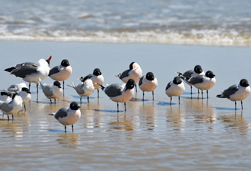 Beskrivelse: Franklin`s Gull, Præriemågens, lyserøde farve kan variere en del, men ses som her ofte hos adulte fugle i yngledragt om foråret.