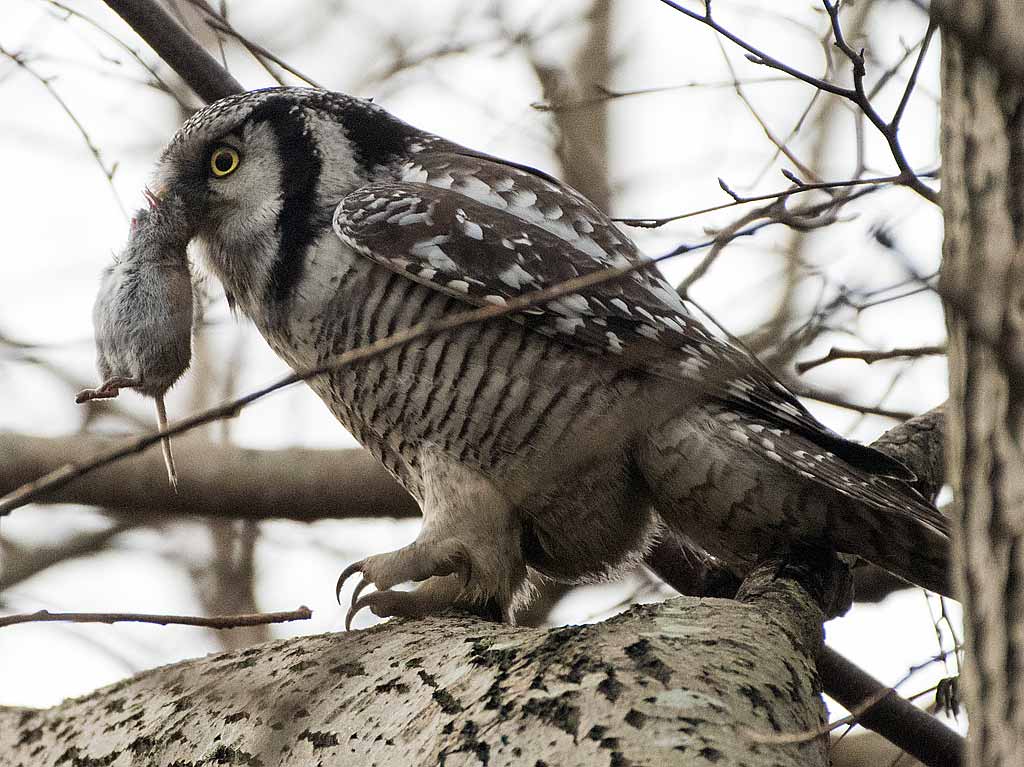 Beskrivelse: Dagen efter billedet var taget, blev høgeuglen fundet trafikdræbt. Den havde valgt at opholde sig tæt på en stærkt trafikeret vej, som den ofte krydsede i lav højde. Så det var nok forventeligt, det endte som det gjorde.