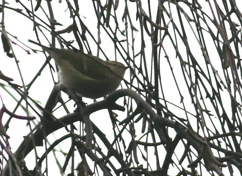 Beskrivelse: At ihærdig indsats på en hjemmelokalitet betaler sig, er denne humei et bevis på: flot fundet af Jan Speiermann. Fuglen færdes mest sammen med mejser og er ret omkringfarende. Den er pricipielt som en afdæmpet, "dirty" version af Hvidbrynet Løvsanger med gråtonet dragt, hvor det brede hvide vingebånd næsten er tydeligere end det lidt gråtonede øjenbryn. Fra fuglen høres et opdelt "tse-lii", lidt ala Lundsanger, men også et mere samenhængende påadgående kald der ligner Hvidbrynet Løvsangers, men er mindre skarpt og knapt så gennemtrængende.