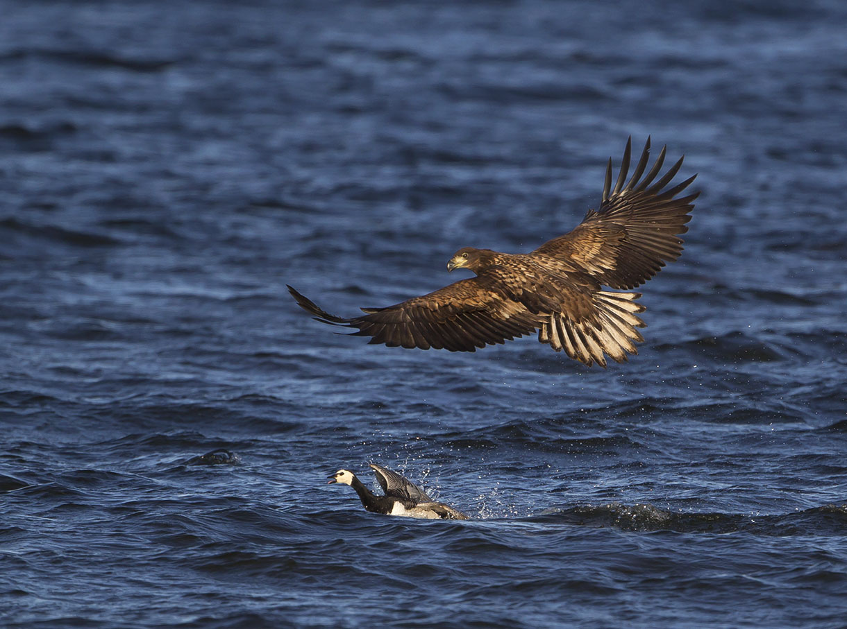 Beskrivelse: Ungfugl slår bramgås.