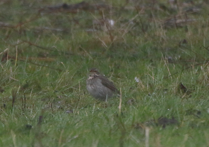 Beskrivelse: Regnvejrsbilleder af ivrigt fouragerende Sortstrubet Drossel. Min første. Ved desværre ikke, hvem der opdagede fuglen først.