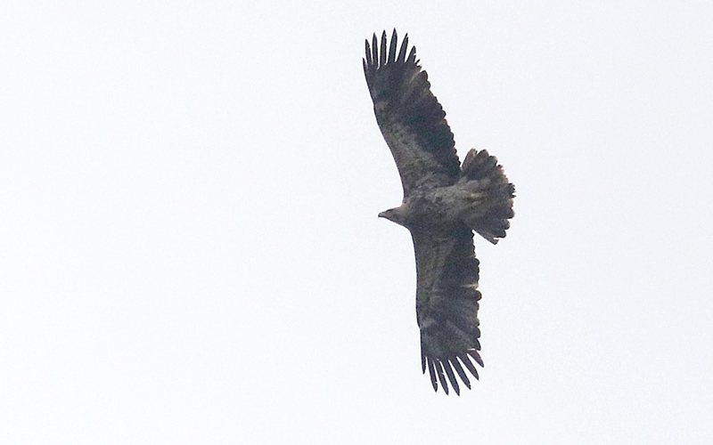 Beskrivelse: Immature Kejserørn over Østmøen. Efter fuglen havde overnattet midt på øen fløj den østpå, kredsede en tid over Mandemarke Bakker førend den fra 0958 indledte sit først langsomme, senere hurtigere træk mod nordvest for at forsvinde fra Nyord mod Jungshoved 11.15.