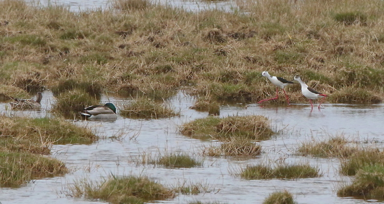 Beskrivelse: Begge stylteløbere ranker sig og løber truende mod to gråænder som hviler. Det lykkes at jeg først andrikken væk og derefter hunnen.