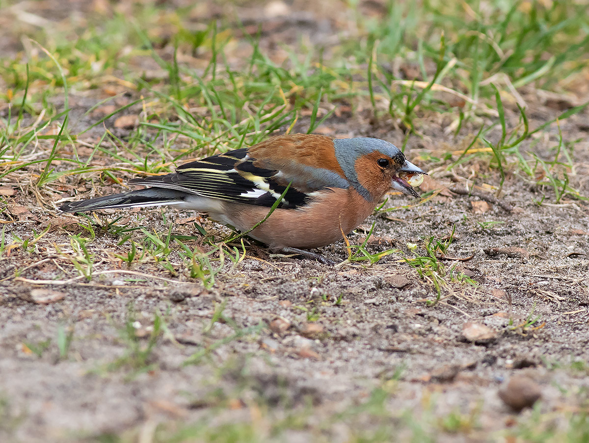 Beskrivelse: den afskallede bog-nød kan nu manøvreres med tunge og næb og fortæres