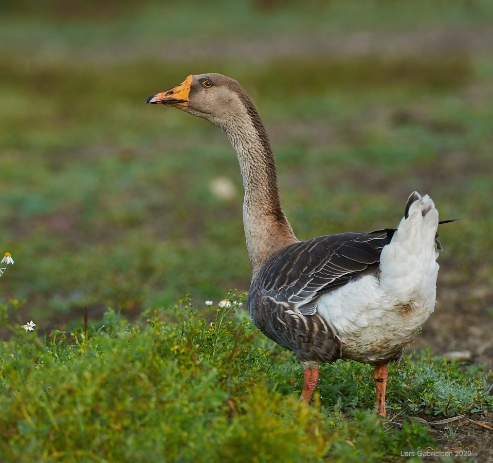 Beskrivelse: Næb, hals og opad strittende hale er vel fra Svanegås.