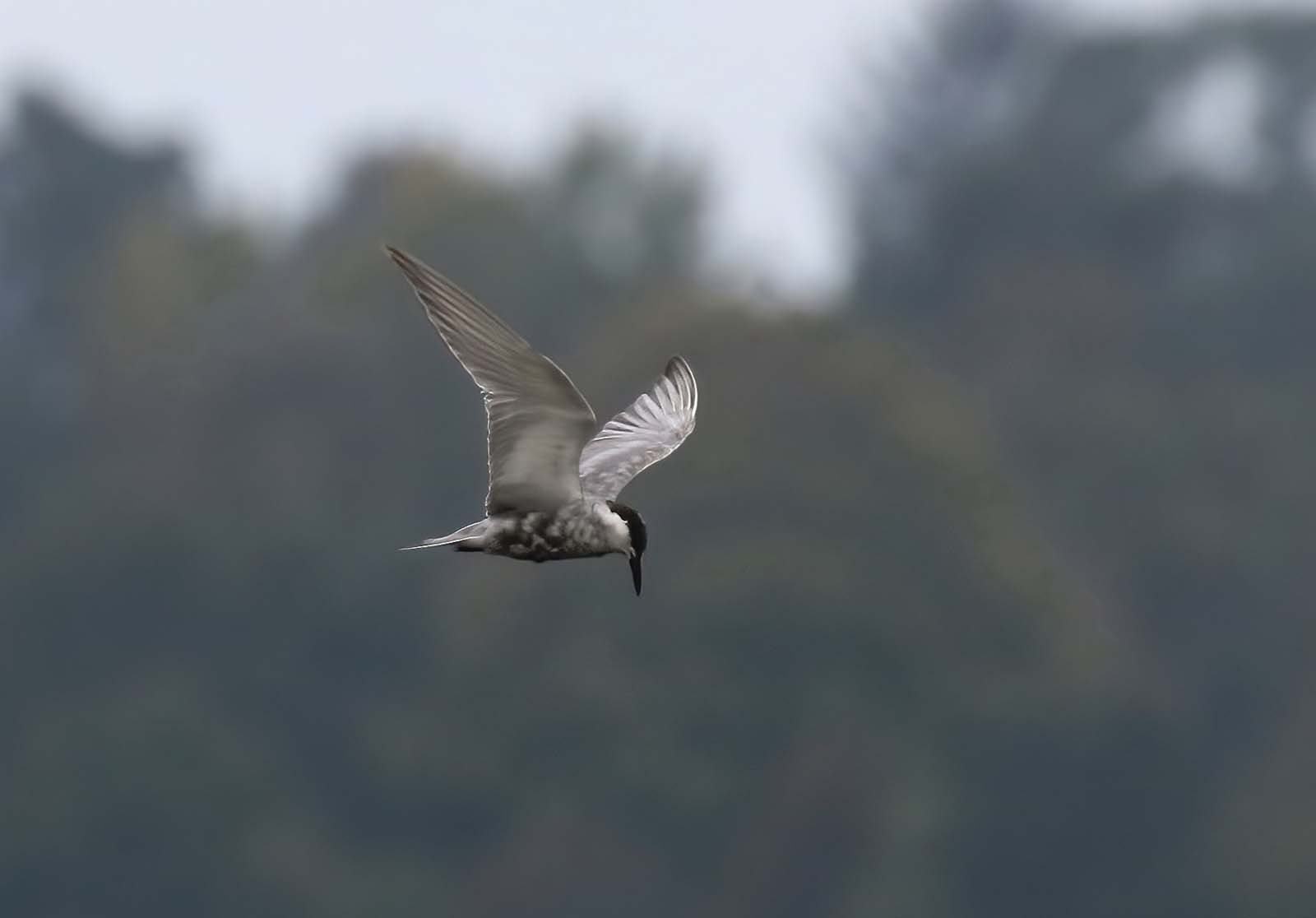 Beskrivelse: Denne adulte Hvidskægget terne i overgangsdragt holdt til ved Holløse Bredning i perioden 1/10-7/10 2020.