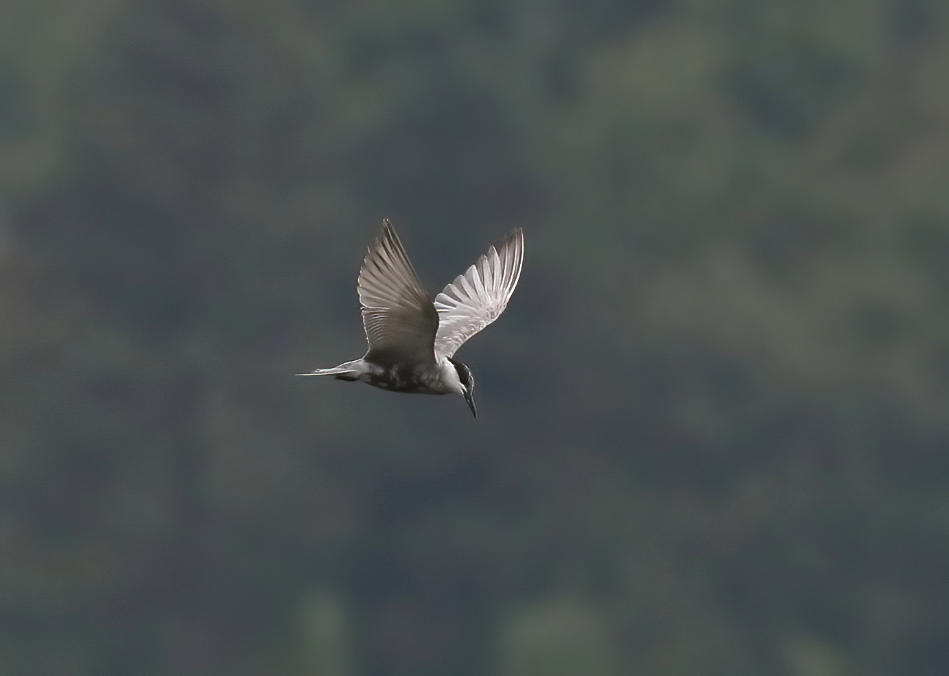 Beskrivelse: Denne adulte Hvidskægget terne i overgangsdragt holdt til ved Holløse Bredning i perioden 1/10-7/10 2020.